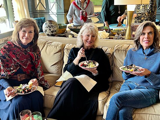 But, first things first: gathering! From left, Margie Nichols Gill, Mintha Roach, and Monique Anderson.