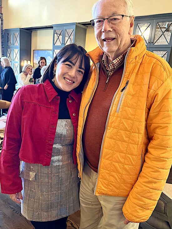 Here’s Maria McHale posing with my sainted husband, Alan Carmichael. He helped everyone get upstairs with their cookies. He’s been doing that task for 22 years! Thanks, Honey.