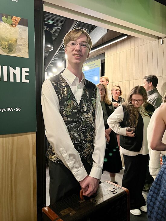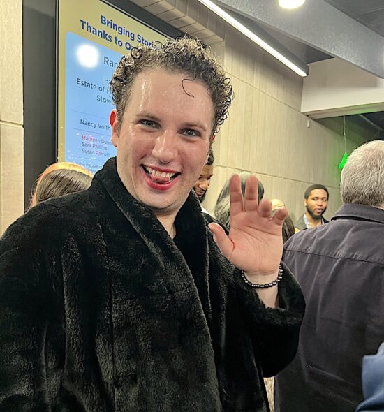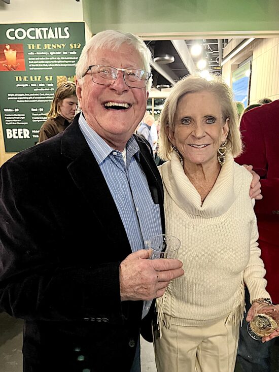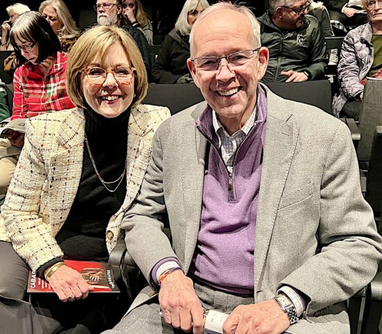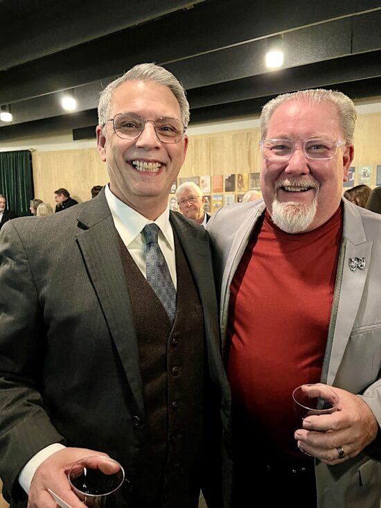 After the show, a reception was in the Liz Stowers Patron Lounge, a new amenity. Here’s Alan Carmichael posing in front of the backdrop that was set up for this purpose.