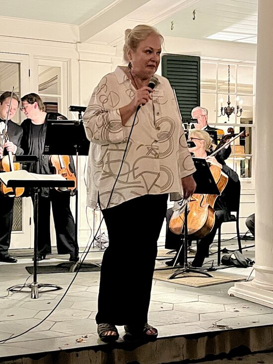 Kim Cunningham made a few comments from the porch as the orchestra was getting ready.