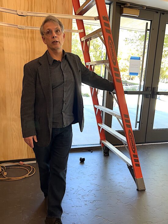 Mickey Sutliff, left, of Sanders Pace Architecture, joined us for part of the tour. He’s here with Department Head Ken Martin.