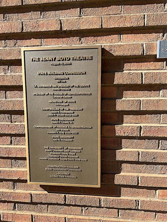The theater is named for Knoxville businesswoman Jenny Boyd. She and her husband, UT President Randy Boyd, are generous philanthropists to our community.