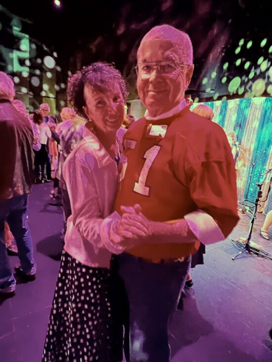 Margie and John Gill having a slow dance.
