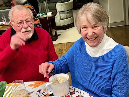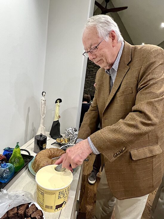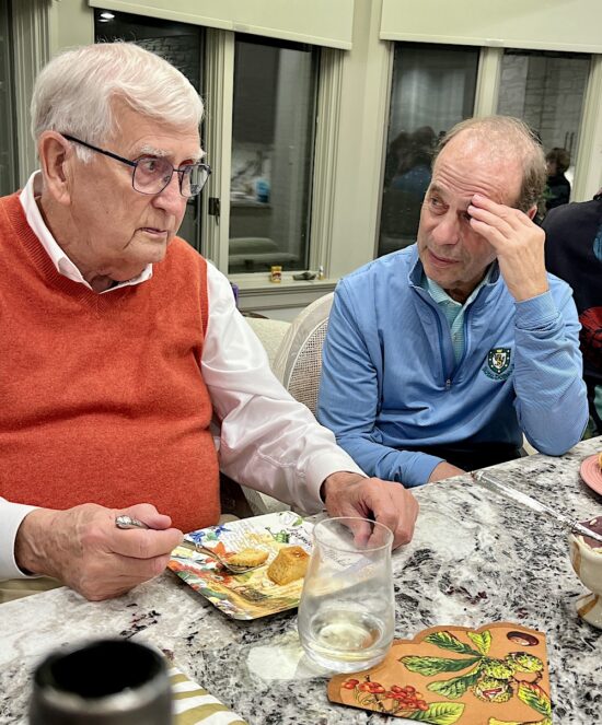 Two doctors talking over dessert. Charlie Mercer, left, is a retired medical doctor and administrator. Barry Winston is still practicing, thankfully. He’s my eye doctor!