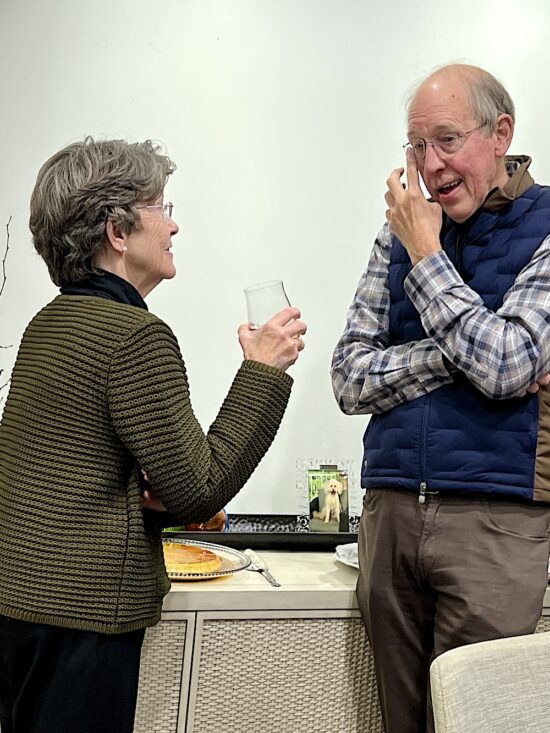 Our hostess, class member Annette Winston, left, with Lane Hays, the partner of class member Stuart Worden.