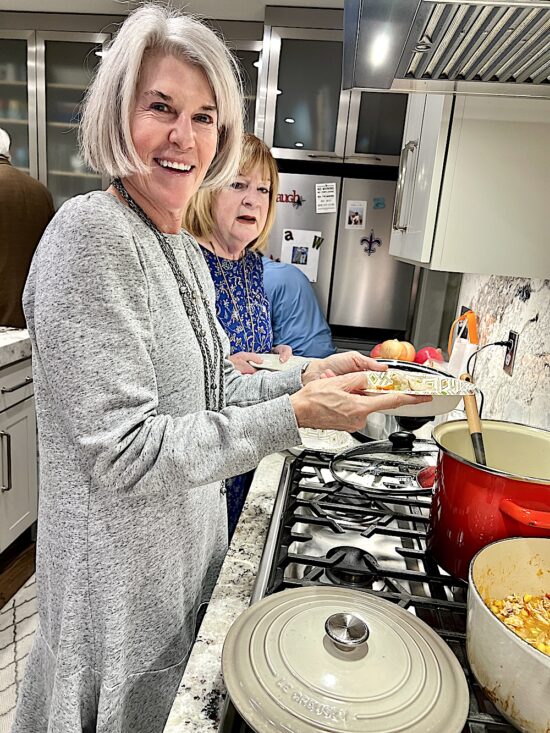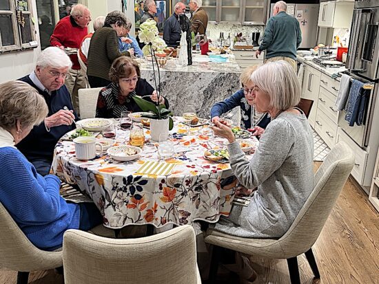 The annual fall gathering was earlier this month at the beautiful Sequoyah Hills home of Annette and Dr. Barry Winston. (She’s the class member.) As usual, everyone signed up to bring a soup, salad, appetizer or dessert. And a non-cook — or someone traveling from out of town– usually brings bread.
