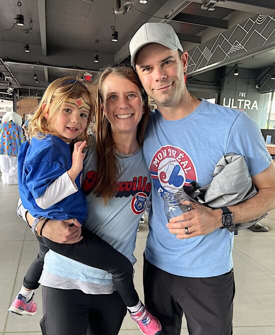 Loved running into Amy and Brandon Barger holding “Wonder Woman.”